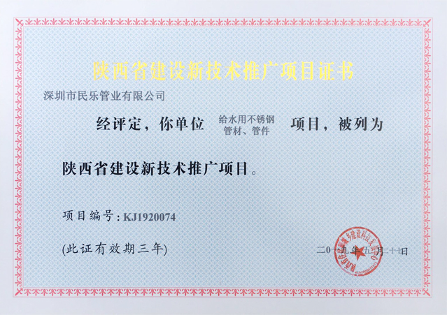 陜西省建設(shè)新技術(shù)推廣項(xiàng)目證書(shū)