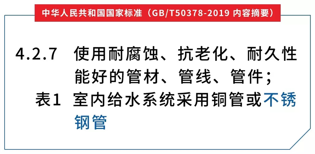 《綠色建筑評(píng)價(jià)標(biāo)準(zhǔn)》作為規(guī)范和指導(dǎo)中國(guó)綠色建筑發(fā)展的根本性技術(shù)標(biāo)準(zhǔn),在引導(dǎo)中國(guó)綠色建筑實(shí)現(xiàn)從無(wú)到有、從少到多、從個(gè)別城市到全國(guó)范圍,從單體到城區(qū)、到城市的規(guī)?;l(fā)展發(fā)揮了重要作用。此次,該標(biāo)準(zhǔn)對(duì)室內(nèi)給水管道的明確要求也在很大程度上表明了國(guó)內(nèi)建筑對(duì)于金屬管材在水質(zhì)保護(hù)優(yōu)勢(shì)上的認(rèn)可!
