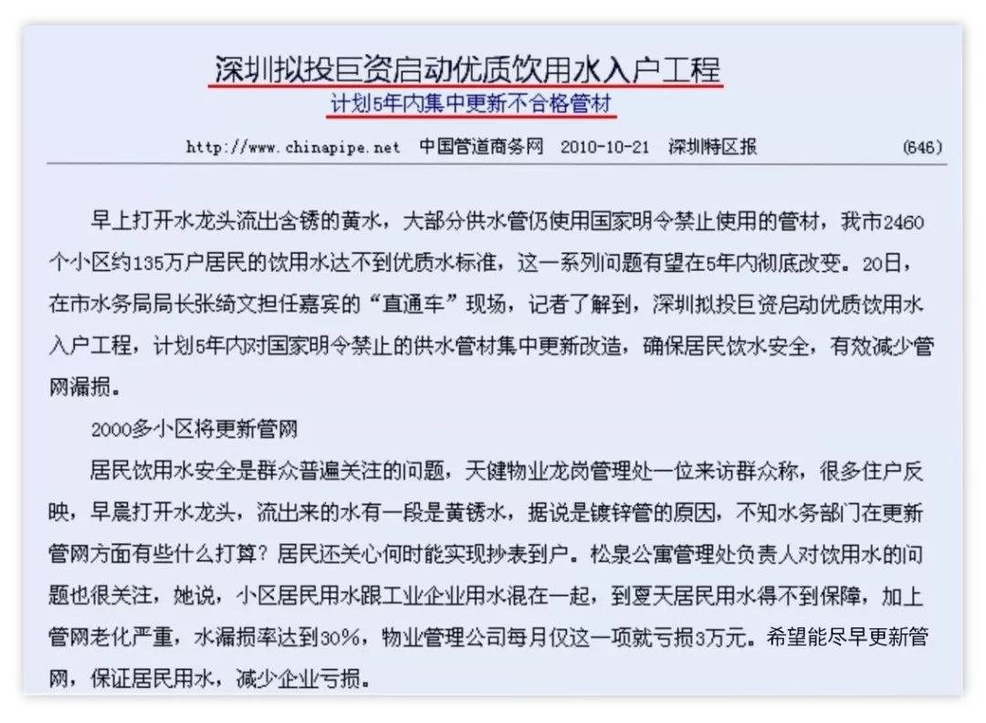 深圳擬投巨資啟動(dòng)優(yōu)質(zhì)飲用水入戶(hù)工程